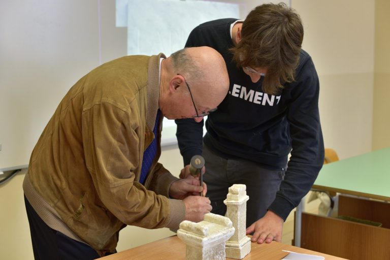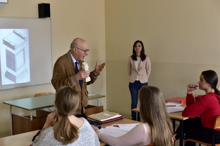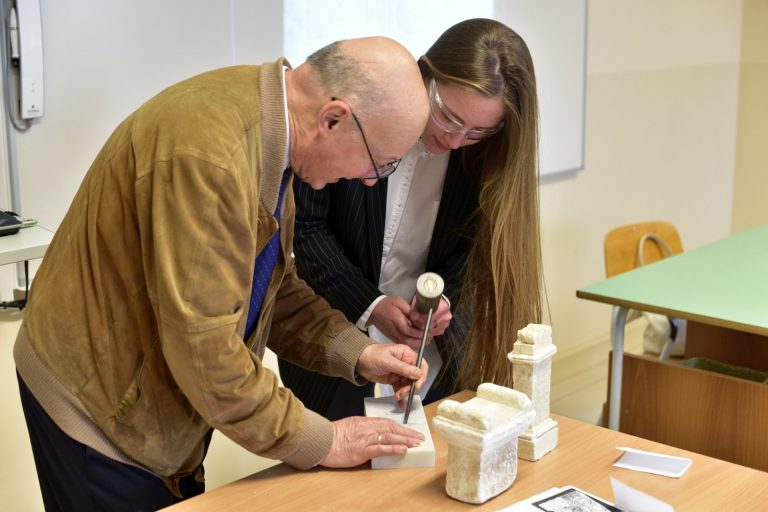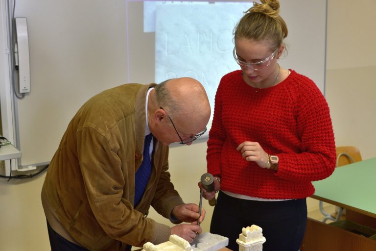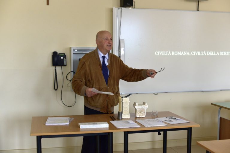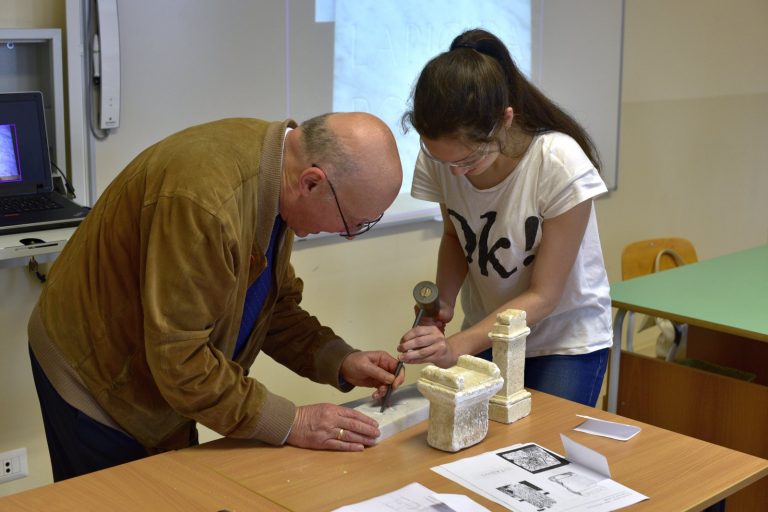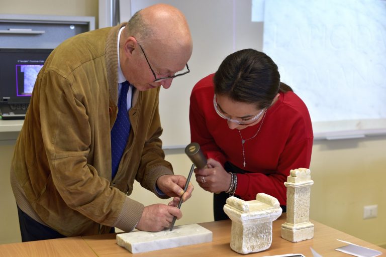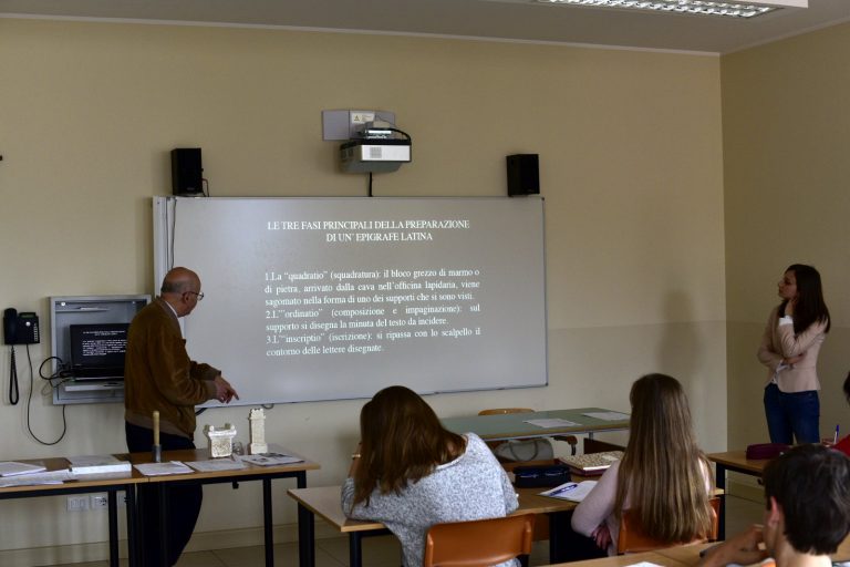 Che cos’è un’epigrafe? Come si scrivevano e come si leggevano i messaggi epigrafici nel mondo romano? Giovedì 17 maggio il Professor Giovanni Mennella, docente ordinario di Storia romana e di Epigrafia latina presso l’Università degli Studi di Genova, ha proposto una lezione universitaria alla Terza Liceo del Centro Scolastico Diocesano Redemptoris Mater: un’occasione unica per gli studenti, che per la prima volta si sono avvicinati in maniera “scientifica” a una disciplina antica; la classe ha avuto così l’opportunità di conoscere in che cosa consista il mestiere dell’epigrafista e di comprendere l’importanza delle iscrizioni, fonti primarie per la ricostruzione storica. Il professore, tra l’altro, ha coinvolto attivamente i ragazzi, che hanno provato a incidere nel marmo con scalpello e martello, come dei veri “lapicidi” romani.
