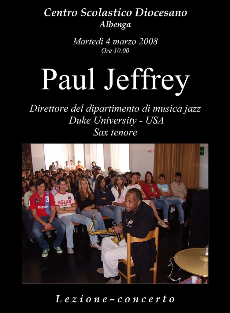 In questi ultimi anni il Centro Scolastico Diocesano ha incontrato tre straordinarie personalità del jazz mondiale, grazie alla mediazione del Prof. Alessandro Collina, insegnante di musica e jazzista emergente sulla scena internazionale.