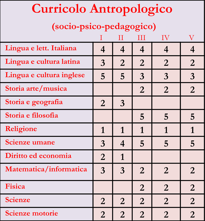 E’ un liceo indirizzato allo studio delle teorie esplicative dei fenomeni collegati alla costruzione dell’identità personale e delle relazioni umane e sociali. Guida lo studente ad approfondire e a sviluppare le conoscenze e le abilità e a maturare le competenze necessarie per cogliere la complessità e la specificità dei processi formativi. Assicura la padronanza dei linguaggi, delle metodologie e delle tecniche di indagine nel campo delle scienze umane. Affronta lo studio della civiltà classica e della cultura umanistica. Favorisce una formazione letteraria, storica e filosofica idonea a comprenderne il ruolo nello sviluppo della civiltà e della tradizione occidentali e nel mondo contemporaneo sotto un profilo simbolico, antropologico e di confronto di valori. Consente di cogliere le intersezioni fra i saperi e di elaborare una visione critica della realtà. Cura particolarmente la conoscenza della lingua inglese.